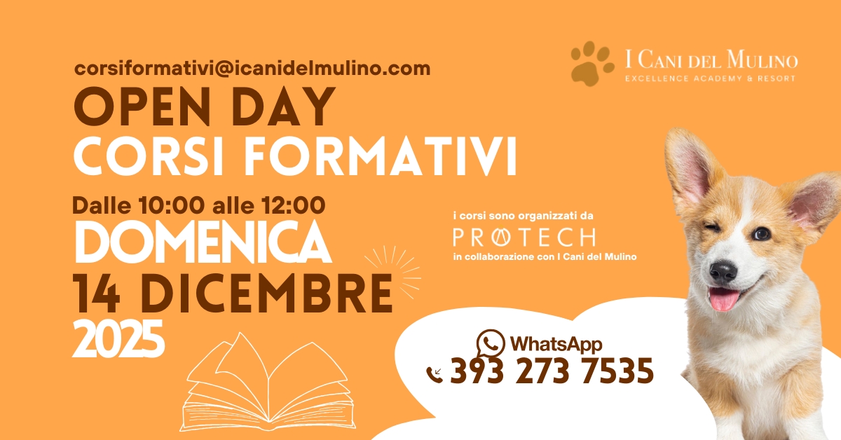Questo Open Day rappresenta il momento ideale per avvicinarsi al mondo della formazione cinofila in un contesto accogliente, qualificato e orientato alla crescita personale e professionale.