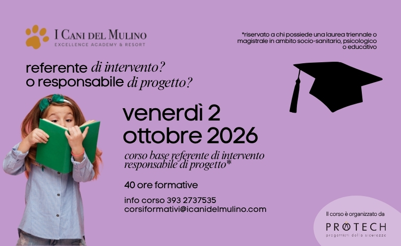 Il corso è organizzato da Protech Srl in collaborazione con I Cani del Mulino
